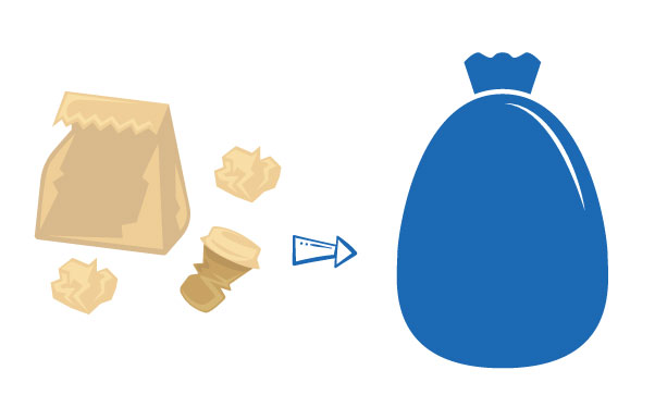 In sacul albastru veti depozita doar deseuri de hartie si carton. Acestea vor fi compactate obligatoriu pentru a se reduce volumul.